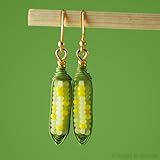 Adorable beaded corn cob earrings handmade using tiny glass beads, green wire and handmade gold plated headpins.