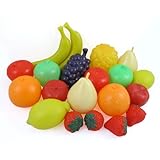 This colorful bag of fruit play set is a great way to teach kids to appreciate their fruits! There are 20 fruits in a bag, includes: red and green apples, tomato, orange, pear, pineapple, grape, strawberries, bananas, lemon. The fruits are lightweight, colorful, and life sized. This is a fun play foods set you kids will enjoy! Read more